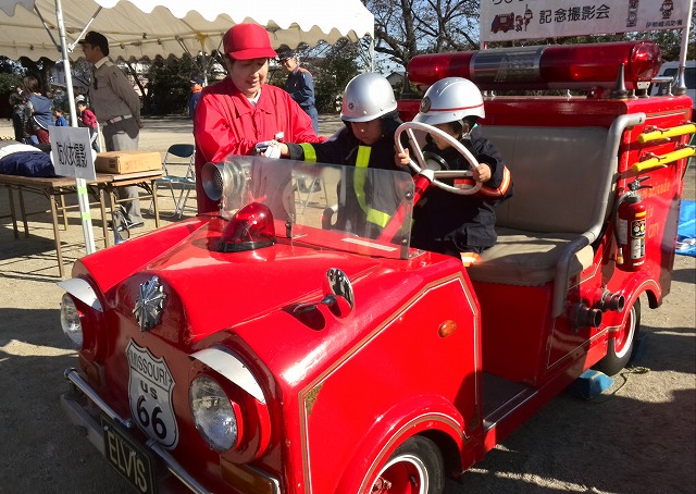 今日は青空の良き日、朝から、地域の防災訓練です子供たちの人気ミニ消防車可愛いです車の好きな方が、ご自分で作ったとか・・・ELVIS(エルビスプレスリーが大好きなので)こんなのを付けたんだとか・・・・消防車これは本物・・・・これもね本物です。煙の部屋とか(煙の中をくぐったり)、震度5位の体験、とか、AEDの使い方の勉強とか、いろいろ午前中体験してきました。良い天気で何よりでした。