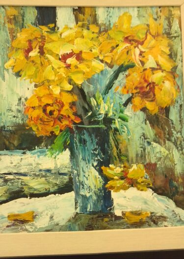 うっとうしい空にご近所の皇帝ダリヤですホッと優しく見下ろしてくれてるようです高く高く咲いています青空だと良いのですがね今日は友人の家で、ボランティアのプログラムを2か所分作って・・・11月はボランティアが忙しいです。民謡のボランティア2か所、48組の金婚式の写真撮り・・・・上手く行きますように!ビシッと決めなくちゃぁ~今から緊張気味です。私の古い作品より