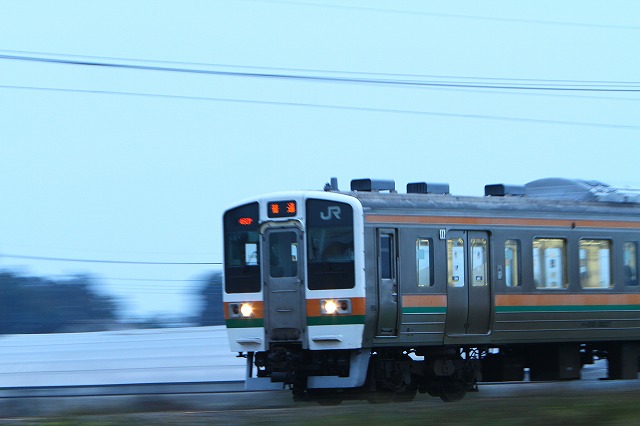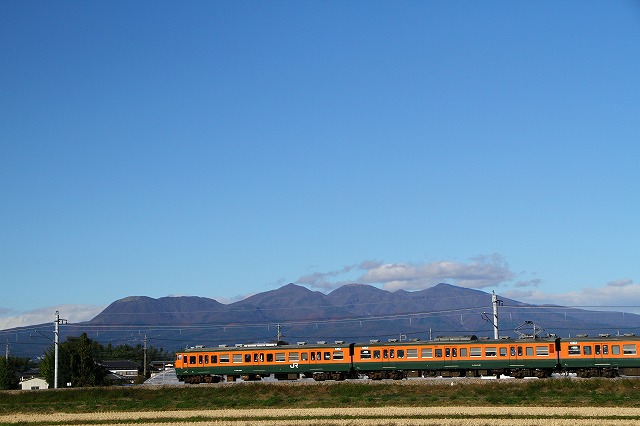 今日は伊勢崎をSL C6120 が走る日、前の日にいろいろ場所探しもしたのですが・・・・写真仲間が、俺が撮る所にしないか?と言う事で・・・・結局前日いろいろ探したが・・・仲間と同じ処にした今日は、良い天気に恵まれましたので、今まで、赤城山を入れて撮ったことがないので、一人そうすることにして、別々の場所で狙った・・・・狙ったはおこがましいか、上手い人ならともかく、にわかテツ子がねぇ~前の日の試験撮りより流し撮り成るものを試してみた・・・・が一発勝負だから・・・こんな頼りないことは出来ない・・・ベテランならともかく、いろいろ学習はしたんですよ、自分勝手に・・・これは今朝の学習↑もめごとがない様に?パトカー2台、ワゴンの警察車1台、お巡りさん6人位巡回・・・・警備の方はそこ此処に、それから押してみてもこう言う場はピリピリしてるねぇ~、もう一人写真仲間に出会い、一緒に撮りました。こんな色の列車も今日通ったよ可愛い色やねぇ~思わずシャッター切りました。今日現場に行って驚いたこと、右に居るお兄ちゃんの様な若い子が、わんさか居るんです数十人皆20歳前後の子ばっかりです。おばさんなど私一匹です・・・・集団で雛壇の様に、並んでカメラ構えてる所撮ったのですが、そんなピリピリした場所故UPしませんバックは赤城山の裾野です「裾野は長し赤城山」上毛カルタにあります。長いでしょうそこを やまどり と書かれた列車が走り込んできました。まだまだSLは来ませんよ、普通電車が走って行きます。バック赤城山 鍋割(なべわり)お鍋の底の様だからだそうですそろそろこの電気機関車?に引かれて・・・SLがお尻で来ますこれだけを東京から撮りに来た人何人も居ました。珍しいらしいのです。私には解りません?ハイハイ お尻にくっついて、桐生まで引かれて行ってる所です。石炭が一杯詰まれてますね桐生から午後高崎迄走るのです・・・若いお兄さんたちの鉄男さん達は血走って怖い位です。いやだなぁ~と思いました。此処まででいったん我が家へ帰りました(2時間余りも時間があるので)・・・つづく