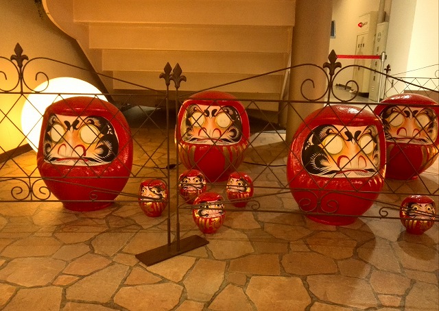 昨日はボランティアのプログラム作りで半日終わりましたが・・・今日は高崎、高島屋迄行って来ました。流石だるまの町高崎・・・・駅ナカのこんな処にだるまが居ました。知っていました?だるまさんの眉の所は鶴・・・口髭の所は亀これで目出度く 鶴 亀に成っているのです久しぶりに高島屋さんに 頼んであったブローチの修理が出来上がったと言うので取に出かけましためんどい 主人と一緒です(めんどいは伊予弁ですよ・・知る人ぞ知るにしましょう)それでもコーヒーは旨かったと、嬉しがっていました。キリマンジャロとかブルーマウンテンとかこめんどい事に拘るのです・・・あ~しんど!でも久しぶり、運転を褒めてくれましたよ(雪が降るかも)食事は余りお気に入りじゃぁ~なく、嬉しくなかったようですが。批評は「あんなものよ」でした。でも食事処に入った途端に・・・ほんとよ「郷土芸術 伊予漫才よ!その名も高き松山の、勝山城にそびゆるは~」と伊予漫才の唄が流れていたのです。途端に目がキラキラしてきた私、店員さんにあの音楽は何処から?と聞くと・・・契約しているBGMからだとのこと・・・偶然にしても嬉しかった。今治のタオルも買って・・・私は故郷を満喫して帰って来ました。兎に角珍道中5時30分頃には我が家着でした。お留守番の悠悠が 「お帰りなさい」っと飛んで出てきましたよ!可愛いやつよのう・・・