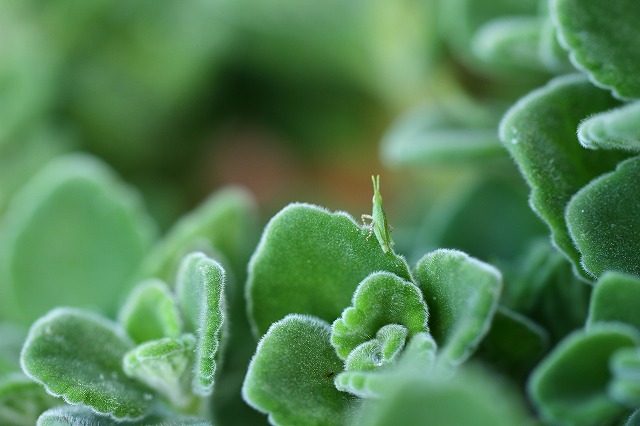 こんな小さな オンブバッタ を始めて見ました3~5ミリですこんな小さいのに大人と一緒ね!我が家の ハーブ「アロマティカス」 の上にそれがよく見ると10匹近くも居るんです、生意気に手を出すと飛びます。良い香りする植物よ葉っぱを食べています 「このぅ~」 です悪いやつ!こんなに小さいからつぶす訳にいかず!この頭のチョキがその証拠・・・手を持って行くとピョンピョン全員、飛んで行きました。大人と違う所は手足がマダラです、大人はマダラでなくグリーン一色ですよねぇ~これから我が家の花を食べてしたたかに生きて行くのかなぁ~+++++++++++++++++++++++真夏に咲く例の「犀角サイカク」もう咲きました不思議 例の臭いはありません これからかな?今日の一日始まりま~す!今ラジオより 「新緑やケーキの様な ベビー靴」 こんな句が流れてきました。素敵!こんな孫が居たらなぁ~幸せ者~ そう思いました。