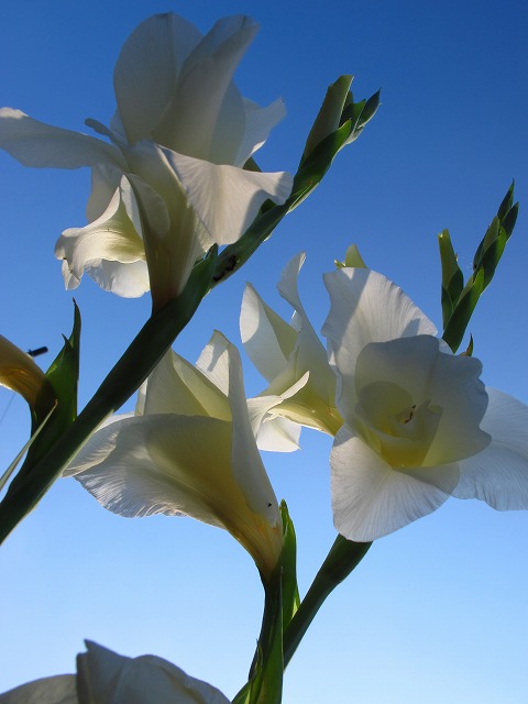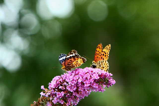 今日はその比較がお目にかけられますこれがヒメアカタテハ蝶一回り小さいかな?これがアカタテハ蝶ヒメより一回り大きくて黒っぽいの背中が黒い処が多いですね、ブットレアの花が大好きの様ですこれは多分ツマグロヒョウモンの♂だと思います白のグラジオラスも良いですね桔梗も咲いていましたよ!メスを争ってるな・・・雄が2匹います。一番上で逃げてるのが♀やっぱりこれも♂二匹に雌一匹です蝶の世界も中々厳しいのかなぁ~ふふふ