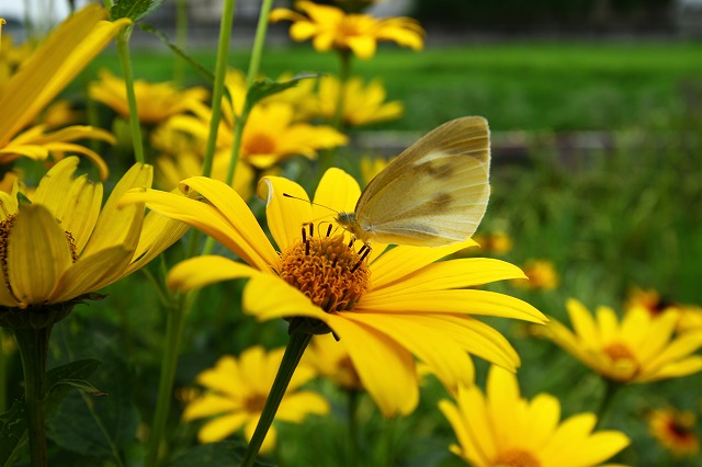 昨夜のラジオ深夜便で聞きました。最初は”證誠寺の狸ばやし”で 野口雨情 中山新平のコンビが作詞作曲したんですって、そしたら證誠寺の和尚さんから、苦情が出たそうな?「私が真面目にお勤めをやってないように聞こえる」との・・・・事負けるな 負けるな 和尚さんに負けるなの所で、遊び呆けてる和尚の様だと・・・・それで、この二人のコンビは架空のお寺の名前にしようとこの證誠寺を ”証城寺”として”証城寺の狸ばやし”と此の漢字が使われてるんだってそして世に出したとか???言っていましたよ、これホント!++++++++++++++++++++++++++++++++今日のモンシロチョウ雨が上がってすぐですモンシロチョウもお腹が空いていたんですね、広角で相当近づいてるんですよ逃げなかったです広角で写して見た毎日鬱陶しいですねぇ~「 梅雨に咲く 花は泣かずや 色さえて 」