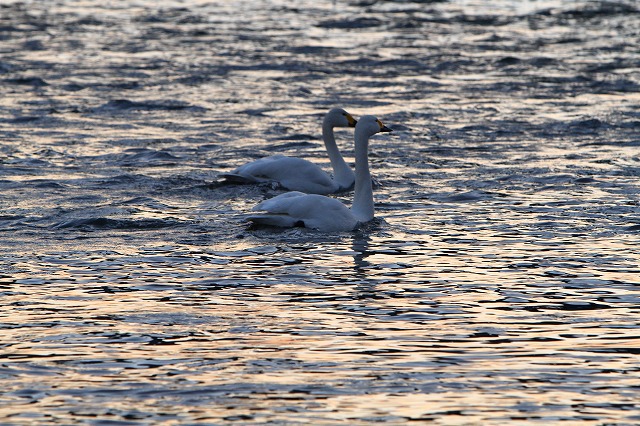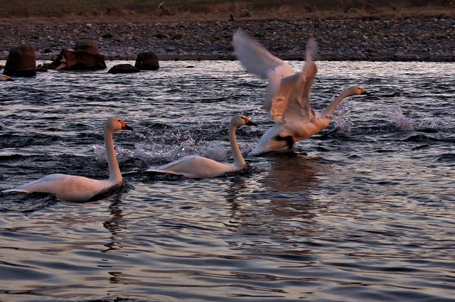 白鳥さんたちまだいますよ、でも前よりは白鳥達が、わさわさしてる様子は解りますコンデジなのでピントが甘いですがご勘弁を!食パンには素早く反応してきます競争です遠くでその様子を見てる子たちもなんとなく落ち着きません食パンだよ~知らん顔の子もいます彼 彼女たちの様子を見てると本当に可愛いです クークーとなく様子は又可愛いね!もうそろそろ 北帰行が近づいてるからかな??何年前かな?一度 多々良沼で運よく夕方北帰行に出会いもうボロボロ泣いたのを忘れません彼 彼女たちは、自分たちが過ごした沼の上を、クークー泣きながら、何度も何度も回ってさよならを言って飛び去って行くのよ。本当に鍵になり竿になりしてクルクル回ってだんだん高く高く飛び去って行くのです。茫然自失で眺めた感動・・・もう一度!そう思いますが