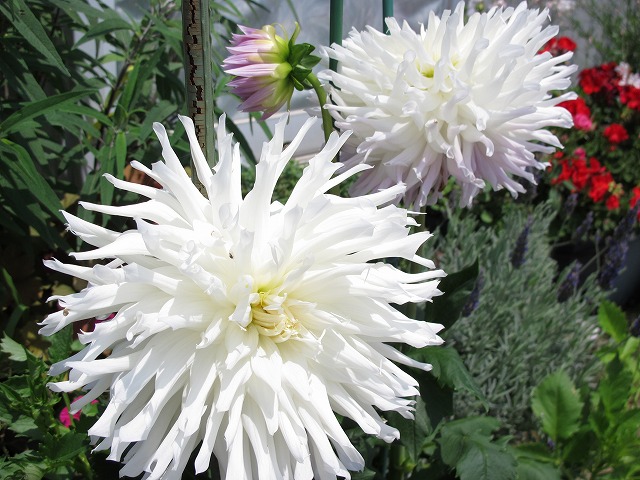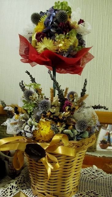 今紫陽花が一杯乾きましたので、紫陽花のリースどんどん作っています。今日は何時も良く行く喫茶「ボストン」のママ様に一個、写真撮るの慌てて忘れましたが届けましたこの写真のは、友人用の物で、昨日一個作ったものです。これの写真をUPしますトップでグリーンになってるのは我が家の白紫陽花・・・それからピンクの紫陽花はブルーとかグリーンの紫入りの様になっています。ニゲラの策 も良い材料になります。薔薇はピンクの濃い色は、我が家で乾かしたもの左の下をUP此の薔薇白は軽量の白粘土で作りましたピンクの濃いのは自然の薔薇我が家で乾かしました。ここには白紫陽花、西洋紫陽花、ピンクの紫陽花と本物が入っていますニゲラの策も可愛いでしょう此方は向かって右側部分をUPしてみました。中央にヒラヒラとリボンを飾って見ましたチャメちゃん待っててねヒオウギが咲きましたこれも面白い色していますねぇ~これから次々咲くことでしょう。