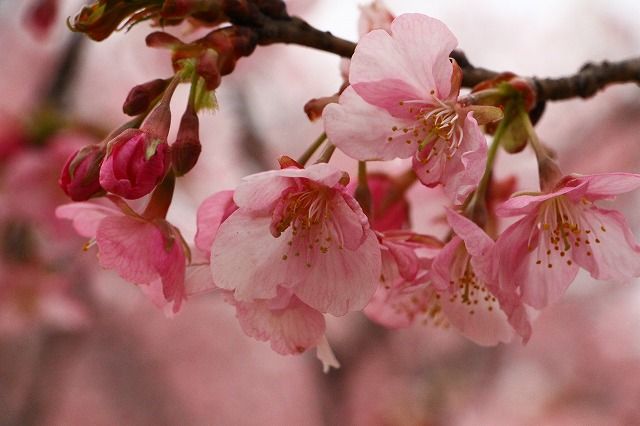 群馬伊勢崎の河津桜が咲いたとテレビで出ました。こんなに近くで行かないのは失礼に成るかなと今日曇り空の中行って来ました。美しく咲いていましたまだ雨は落ちてないので写してきました。メジロ君達も集団でやって来ました一瞬で飛んで行ってしまいます彼らは集団で移動しますこの桜も本当に大きくなりました間もなく雨の匂いがする公園ですが見物の人は一杯でしたワンちゃんも見物です。我が悠悠は行くの?行かないの?と言いましたが留守番の方が良い様でしたので、連れてきませんでした。午後からは雨になってしまいましたカメラ持ってる時だけは癒されています