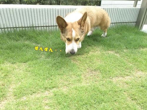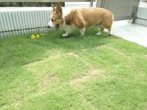 芝生にチッチをすると、枯れるらしく・・('ω')