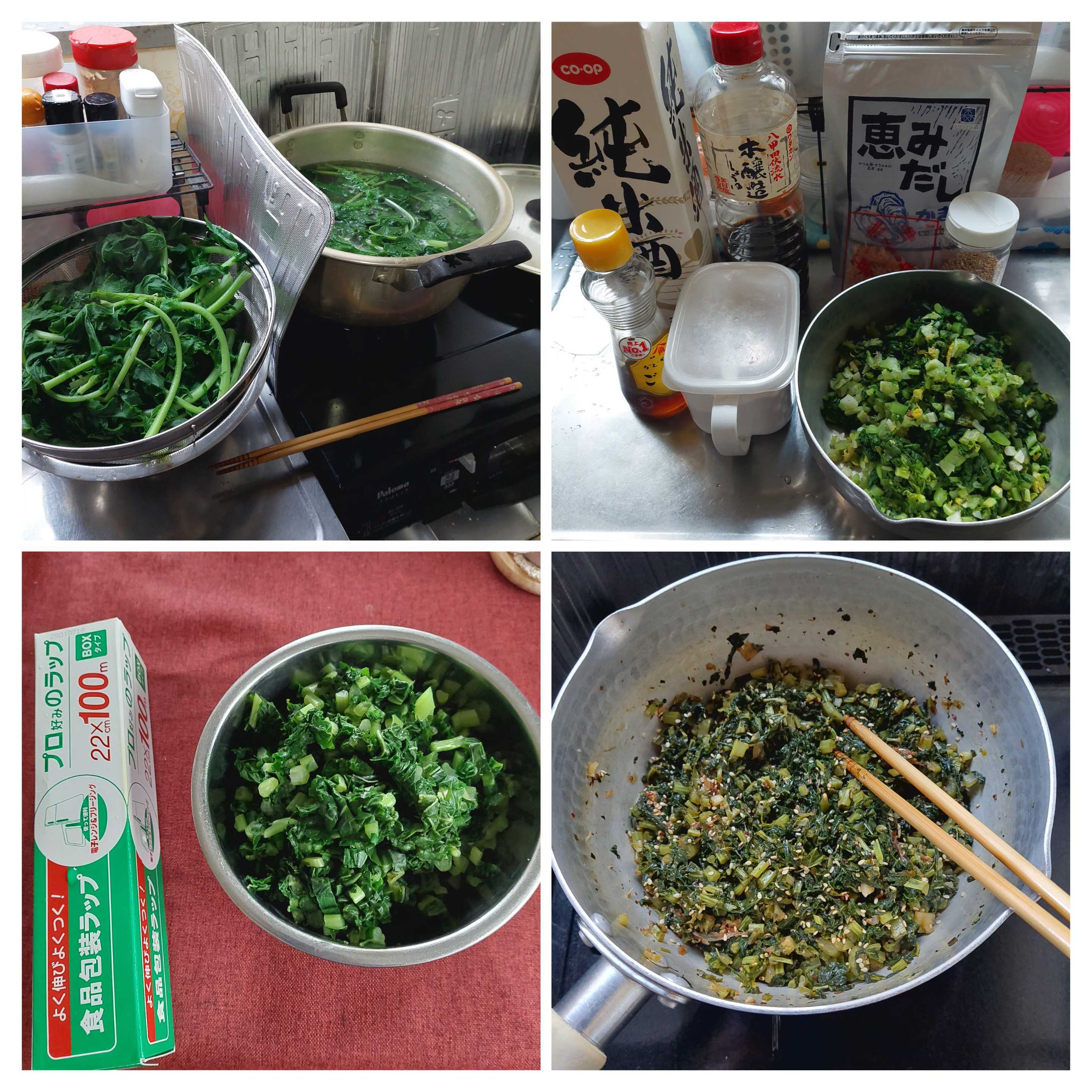 ●大根の葉は茹でて刻んで、半分は青み用にラップして小分け冷凍