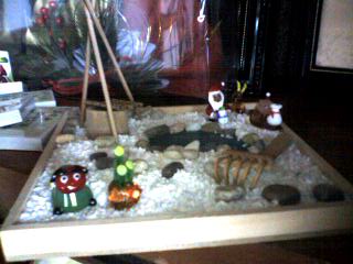 我が家のお正月飾りです。ミニチュアの門松とえとのねずみの置物を、玄関に飾りました。バックは、山下清の絵の印刷です。こちらは、飾り棚のミニチュアコーナー獅子舞と門松を飾りました。後ろのほうのサンタとトナカイはクリスマスの飾りでした。こんな小さなものを飾って喜んでいます。そろそろ片付けですが、次は何にしようかなお雛さんを買ってこなければ人気blogランキングへ↑応援のクリックをお願いします