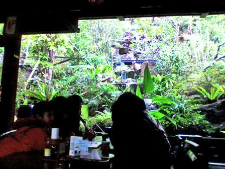 こんばんは、仕事始めで、久しぶりに出勤です。ひところのように、「華やかに新年会」 ということもなくなり、ふつうに仕事が始まりました。夕方、簡単なオードブルとビールで乾杯がありましたが、皆さん早々に帰宅しました。まっ、年末ぎりぎりまで仕事していたので、久しぶりに会うという感動もなかったので。。。。 2日に、ヤンバルへ行きました。熱帯ドリームセンターへ行く予定でしたが、「大家(うふやー)」というお店でお昼を食べていると、3時過ぎてしまい、熱帯ドリームセンターは断念。そこで、ちょっとした観光客気分で散策を始めました。店の窓から滝が見られます。お店は、小さな滝がたくさん流れる崖のそばにありました。本当に大きな家で、団体客が入っても大丈夫でしょう。 敷地内にあるまちゃーぐゎー(売店)パインビネガーのソフトクリームをいただきました。 売店で購入したパインビネガー酢の醸造工場も敷地内にあり、酢のにおいでいっぱいでした。古い沖縄の民家を移築した建物を見学することもできます。ちょっとした博物館ですね。散策コースも設けられ、崖の上まで上ることができます。ノボタンが咲き誇り、見事でした。でも、登るのでしたら、あずまやまでですね。それ以上は登らないほうがいいです。ちょっとがっかりします。人気blogランキングへ↑応援のクリックをお願いします