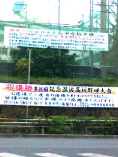 おはようございます。今日の沖縄は、蒸し暑いような、じめじめした天気です。甲子園大会では、沖縄代表の沖縄尚学高校が、見事優勝しました。昨日は、その沖尚が帰沖すると言うことで、またまた、フィーバー。空港に3000人、学校の前には1500人の人が集まったそうです(新聞報道)おかげで、私の通勤路は帰宅時、交通渋滞となっていました。土曜日は込まないのにでも、許します。恐れず、侮らず、気負わず昨日の朝、沖尚の前を通ると、お掃除していましたね。野球部がお祝いだから、今日は休みといいそうですが、そんなこともなく、普段通りに今朝もようすを見に行ってきました。1500人も人が集まったのだから、さぞ、ゴミが落ちているだろうと思っていったのですが、 何もありませんでした。やっぱり、沖尚野球部大好きです。人気blogランキングへ↑応援のクリックをお願いします