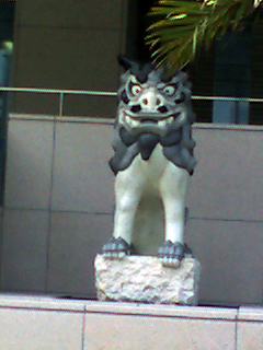 おはようございます。今日もいい天気になりそうです。おもろまちに新しくできた日本銀行那覇支店のシーサーです。左側にもう一体あります。やっぱり、シーサーは一対が本当ですね。一説によると「あ・うん」の中だとか・・・・日銀は、総裁も決まらず、世界的な問題になっているようですがそんな中にあっても、シーサーはだまって世の中を守っています。考えてみると、大変危険を冒して、写真を撮ったような人気blogランキングへ↑応援のクリックをお願いします