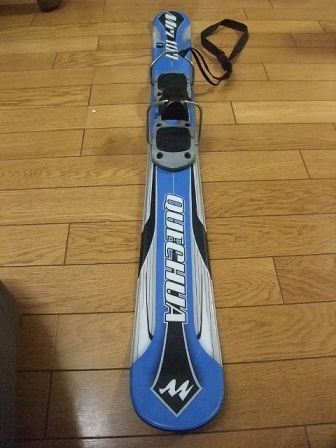 前シーズンに買った「ファンスキー」ショートスキーとも言うのでしょうか。1メートルほどと短いので車に積むのも楽々駐車場からゲレンデまでも担がずに持てる重さです。ビンディングでないので、重さはないのですがその分装着はちょっと大変。ブーツをはいてしゃがみこんで、「カチッ」と止めるのは正直大変です。外すときも結構力がいるし。でも付けはずしだけ許せれば、使えるスキーです。ビンディングみたいにストッパーがないのでつけているときは安全紐を足に巻きます。サイズ調整も割と簡単にできるので、他の人と気軽に貸し借りできるのも面白いです。私のはこのタイプ【訳あり激安!ファンスキー】DREAMFLY(ドリームフライ) Limited FUNSKI P-990 99cm ブラック DFMS-007■お手軽、簡単、持ち運び便利■2010/11【JOYRIDE】ショートスキー/ファンスキー/スキーボードJOY-MSK400 [99cm/BLUE]■お手軽、簡単、持ち運び便利■2010/11【JOYRIDE】ショートスキー/ファンスキー/スキーボードJOY-MSK300 [99cm/ORANGE]2011モデル・2011モデル激安■JOYRIDEファンスキー*JOYMSK100*BLK*99cm2010モデル・2010激安■KEMPERファンスキー*KPMSK930*RED*99cmビンディングつきもありました。これなら脱ぎはきは楽ですね。しかも9990円。2011モデル・2011■JOYRIDE金具付ファンスキー*JOYMSK100B*RED*99/SL100E2011モデル・2011■JOYRIDE金具付ファンスキー*JOYMSK100B*BLK*99/SL100E2011モデル・2011■AIRWALK金具付ファンスキー*AWMSK3B*RED*99/SL100E