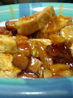 昨日遊んでいたので、持ち帰りのお仕事を必死にやっております。頭から煙が出そうです。ほぼ脳がショートしてるかも。なので、買い物に行けなかった……(涙)ですから、冷蔵庫を「ガサ入れ」いたしました。お豆腐2丁。ベーコンの塊…これがおいしいんですの。切り干しキムチ。う~ん。何か出来るかしらね。やってみっか!!で、けっこうなおかずが出来上がりました~♪覚え書きレシピです。作り方1:ごま油で、お豆腐をじっくり4面をきつね色に焼く。 焼けたら、お皿などに取り出しておく。2:拍子木に切ったベーコンを、これもじっくりと焼く。 脂が出てきて、こんがりとおいしそうに焼けたら、 割干しキムチを投入。 しばし炒める。3:お豆腐を戻し入れて、ベルのタレ(ほんの少々)、 めんつゆ(大さじ2くらい)、 お湯(半カップより多少多め)を入れて、 煮立ったら、 大さじ1の片栗粉を水で溶いて、回し入れ、 とろみがついたら 笹切りのネギを入れて出来上がり。チビ太、お。これうまい~~!!ひさしぶりに聞いたわ。その言葉。今日もごちそうさまでした~♪