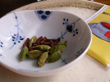 ・小鍋にお湯を沸かして、カルダモンとクローブを入れる。