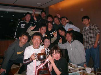 この場で、来期の人事も決まりました。監督が、よし吉さんから第三ゴールキーパーながら飛躍したタカムさんに決まり、キャプテンはというと、みんなの強い希望もあり峰斗が留任することになりました。来期は追う立場から追われる立場になると思うんですけど、気を抜かず1試合1試合を大切にし、2冠できるように頑張っていこうと思います。