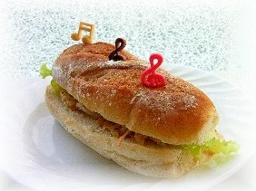 ご飯に合うおかずはパンに合う」と某ホテルのシェフが言っていたような…。ということで、昨日の「かにかまメンマ」もソフトフランスのフィリングにおかずピック フルーツ 果物ピックメロディー 音符 16本入