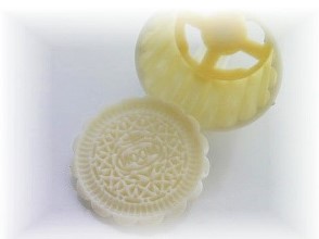 この型を見かけたとき、月餅型で「なぜ蟹?」と思ったのですが。月でうさぎが餅つきをしているというのは日本での言い伝えで、海外では別の動物の場合も。中国では「ガマガエル」や「大きなカニ」等を月に見立てる風習もあるようで、納得容量63~80g、深めの模様のため破れないように皮:餡=3:7位がよいかなあ。甘い月餅ではなく、蟹風味を生かしたお惣菜系を考えたいと思います。