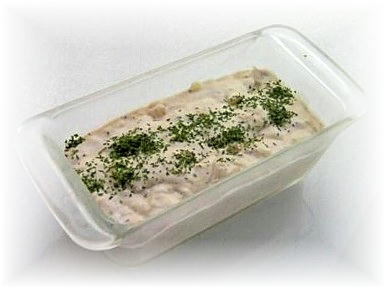 レシピのクラッカーはフランスパンに替えて、テリーヌは半量で作りました。(分量をφ(.. ) メモメモ)●材料(約230g)①粉ゼラチン 5g 水 25g②玉ねぎ 50g→レンジ2分加熱 ↑①③を加える→冷めたら④を加える③ツナ缶 45g(オイルを切る) セロリ 5cm(20g) 鶏ガラスープの素 小1/4 塩 小1/4 こしょう 少々④レモン汁 5g マヨネーズ 28g 牛乳 30g⑤ホイップパウダーの素22g+牛乳28g→硬くホイップして②に加える。