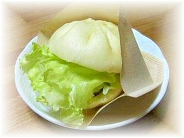 皮生地の実験をしたため、冷凍庫には大量の肉まんがあるので、井村屋さんレシピでバーガーにリメイク🍔コーヒーフィルターで代用したバーガー袋に入れて完成!