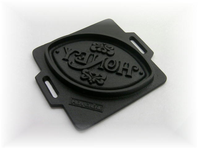 昨日に引き続き、型のご紹介です。今は「ベルギーワッフル」がメジャーですが。σ(^.^)の子供の頃は、「ワッフル」といえば文字や模様のついた楕円形に焼かれた生地で、クリームやジャムを挟んで二つに折った形状が特徴の、いわゆる「ジャパニーズワッフル」。実は3個焼きの型を持っていたけれど、鋳物製でとっても重た~い、焼きムラがある&「EISEI(衛生?)」&「JIYOU(滋養?)」の文字が古臭い等で、お別れさせていただいたのです。 でも、スーパーのフレッシュデザートコーナーでワッフルを見るたびに、未練たらたら~そんな折、NHK「グレーテルのかまど」で放映された「萩原朔太郎のワッフル」を観て、朔太郎が記した「わっぷる」を作りたい!!!思いがムクムク。サイズダウンすればいいんじゃないと、以前千趣会の「MON CHERE」シリーズで販売されたコンパクトで可愛い1枚焼きをメルカリでゲット!南部鉄器のメーカー製だと思うけれど、文字が本家の「HAPPY」のはなく「HONEY」にしているのはご愛嬌?馬嶋屋菓子道具店さんの復刻版に至っては、文字も模様もなくなり、シンプル&スタイリッシュに。昔ながらの ザ・ワッフル型 4個付