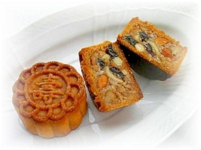 トリオの最後になった「寿」月餅の中身は ゴロゴロとナッツがたっぷり入った伍仁餡。(レシピの半分量で作りました)ナッツの軽さが餡の容量に影響したようで、「福・禄・寿」3つの中で一番嵩高に。●材料(5個分)〈月餅皮(20g/個×5)〉〈餡(30g/個×5)〉ココナッツファイン 25gラカント 25g刻みオレンジピール 10g水 50g薄力粉 5g塩 少々五香粉 少々ミックスナッツ、レーズン※ 60g(各12g)※ナッツは電子レンジでロースト状態に。 カシューナッツはブロークンタイプ、クルミは粗みじん、 アーモンドは半割、ヘーゼルナッツはホールで。200℃10分焼成