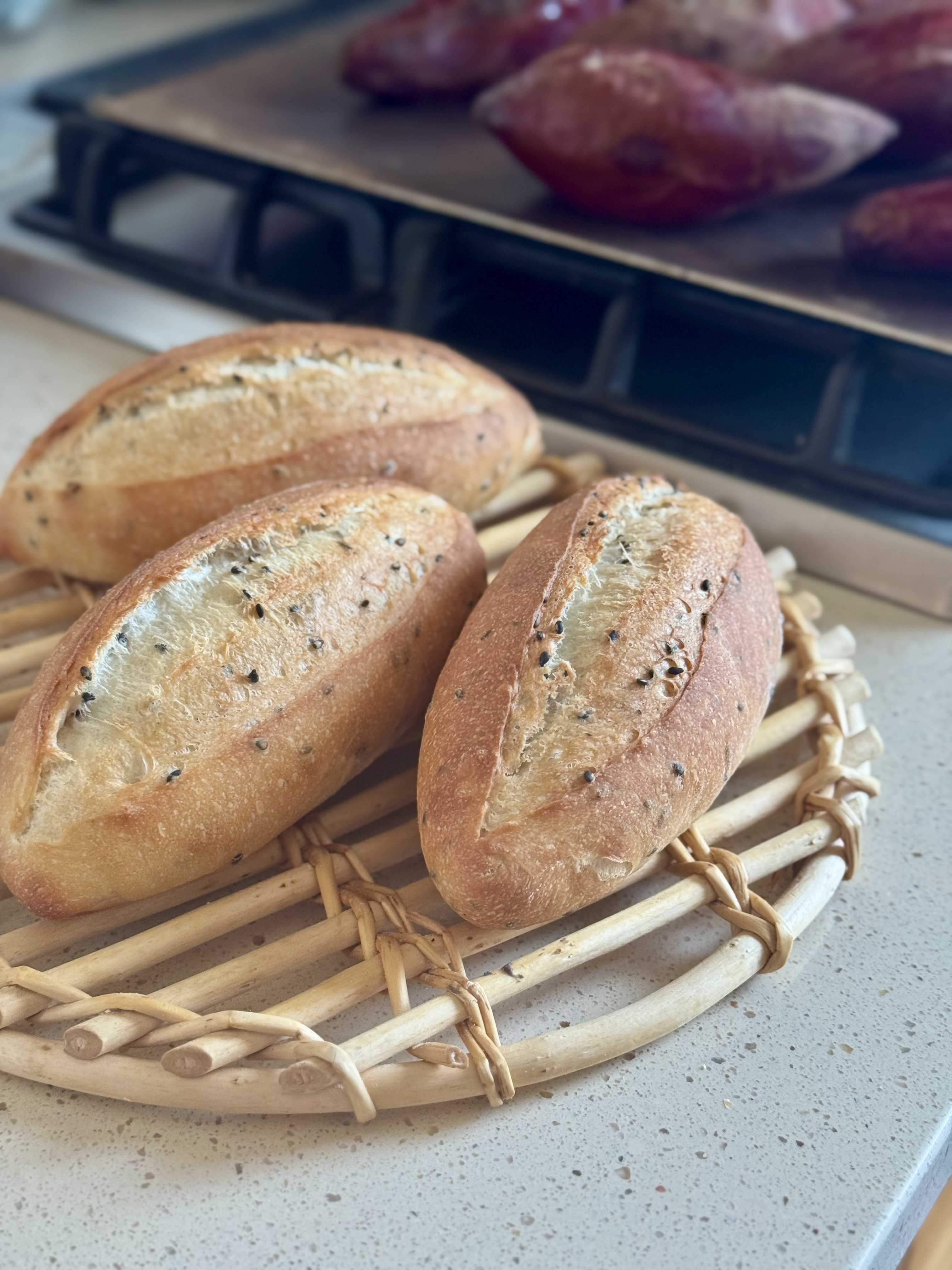 黒胡麻を入れたソフトフランスを焼きましたが、主役は写真右側にチラッと写っている…