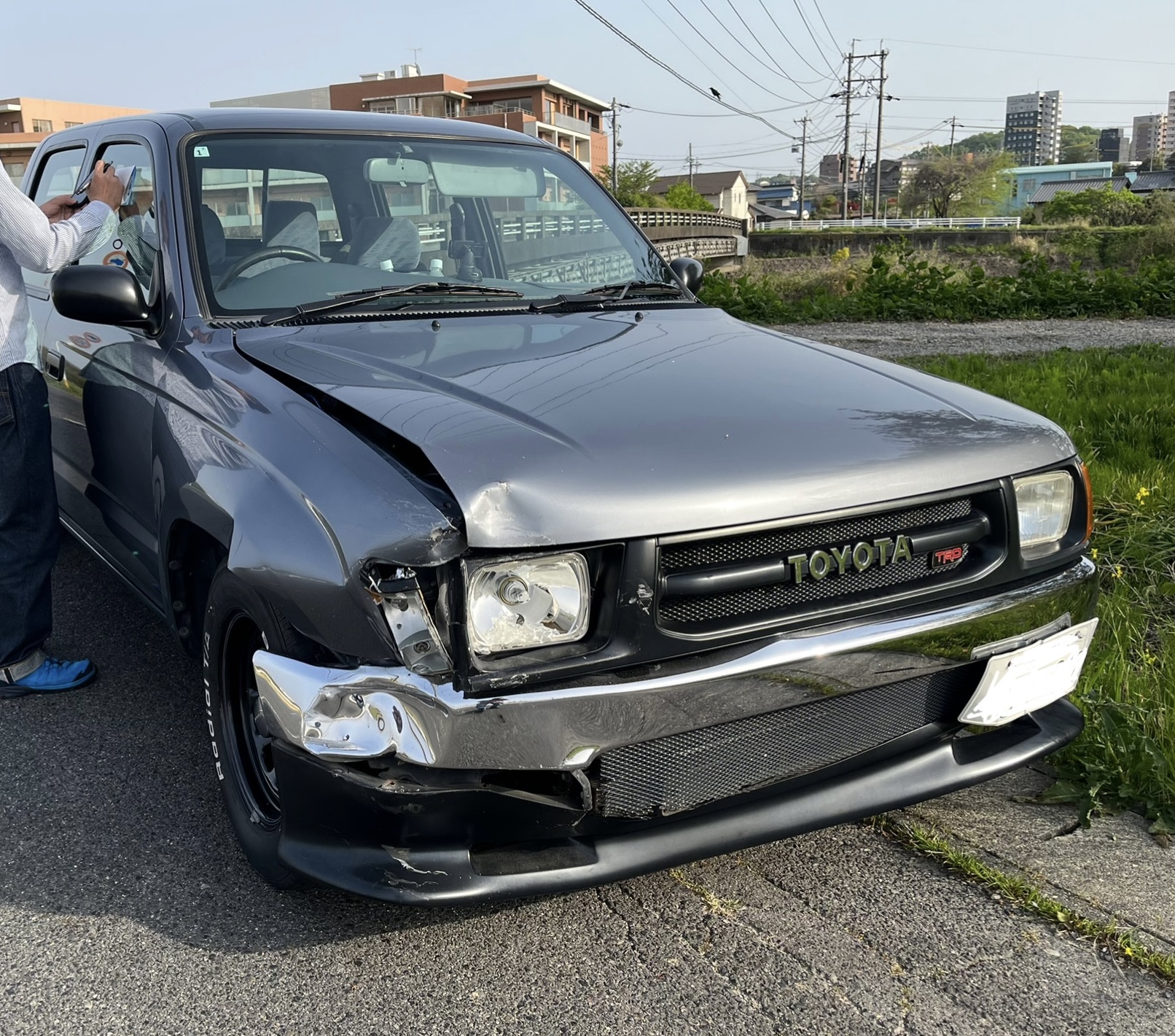 4月19日に事故に合いました。プリウスミサイルが飛んできました。細い橋の出口私はゆるい左カーブ、対向車は右カーブをショートカットで橋に進入。この場所は危険なので、最徐行していて衝突時は私は完全停車していた。事故後、先方は平謝り。本日、10-0が決定しました。もう25年前の車体だし、部品が出るか心配😔でも絶対に復帰させる