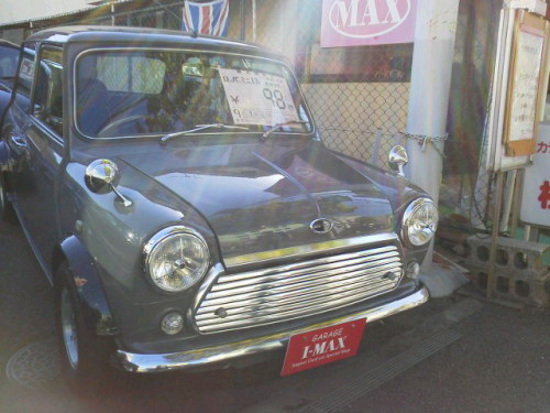 前回のつづきです♪次に訪れたのは「石原商会」です。もろガソリンスタンドを改装したお店ですね♪ピックアップはお店の車でした...。お店の人は、感じの良い人で主治医になって頂けるそうです。ピットには綺麗なロータスヨーロッパがありました!もう1台走ってて、戻って来ました!!事務所の中にはノートンが埋もれています!そして売り物のミニはこの1台でした...。渋目の紺色のマーク3仕様です。コスミックのホイールを履いて、内装もブラックでいい感じです♪キャブ車かと思いきや、1300ccのインジェクションでした。(リアエンブレムは1000?)お値段は車両価格70万円との事!これなら即金で買えます♪次回につづく...。 ↓ノートンのジャケット♪