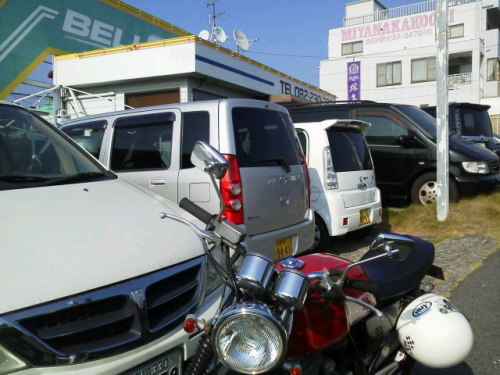 昨日(10/30)の夕方、I-MAXから仮納車が出来ると連絡がありました♪ルーフ塗装や点検・整備はまだですが、とりあえず乗れる状態で仮納車して頂きます。(今回の休暇中に少しでも乗りたかった為)そして休暇が終わったら再度引き取り、きちんと作業を終えて本納車してもらいます。今朝、代車(ミラ)でI-MAXへ向かいました!I-MAXの車検証入れがありました。I-MAXのブログにも納車の様子が出ています!詳しくはこちら♪そして無事帰宅!ウインカーとワイパーを間違える事なく走れました。もちろん、その後も走りに行きました♪バイクでよく通る海岸線です♪そして野呂山にも行きました!のんびりドライブです♪車検証には走行距離7,000kmと旧走行距離3,600kmと記載されていました。ほんとかなぁ? ↓マットがないので買いました♪
