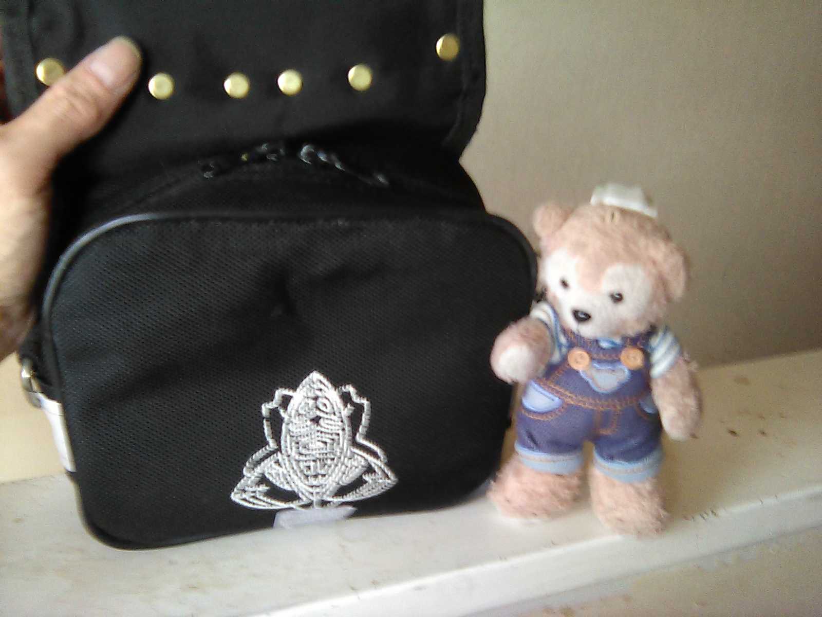 学生かばんに付いていたぬいぐるみですが、かばんがミニになったのでぬいぐるみが大きくなった様に錯覚します。
