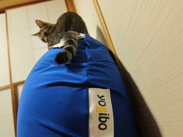 立てかけたヨギボーの上でくつろぐnia以前はヨギボーに見向きもしなかったのに…ヨギボーの中身は発泡スチロールのビーズだから座っていると意外と暖かいのよねそのせいかな今日夫は実家に泊まりですniaと2人きりだー何して遊ぼうかな