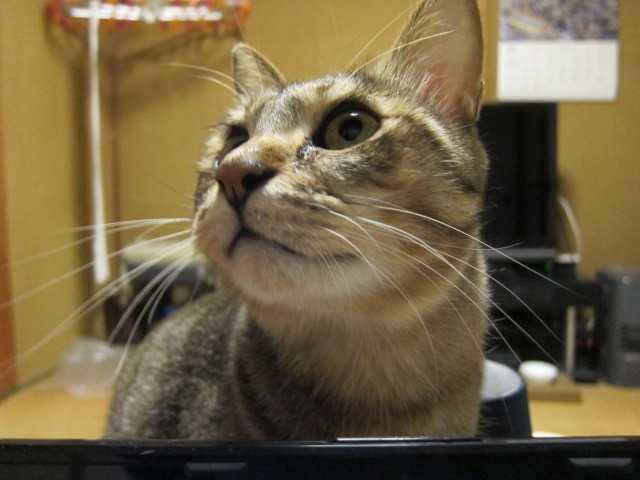 PC作業していると邪魔しにくるのは猫あるある。お約束ですねniaはキーボードには乗っからないけれどPCの裏からちょいちょい手を出すので気が散るし画面が見づらくってしかたないちょっと大人しくしていてくれませんかね