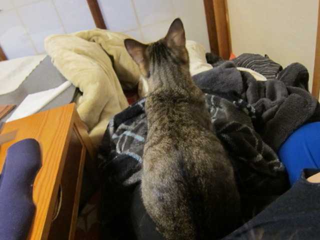 昨日の夜は珍しくコタツで寝なかったnia一回コタツに入ったのだけど私がベッドに行ってしばらくしたらniaも来て私の脇の下でゴロリと横になってそのまま朝まで一緒に寝ていました今日も雪は降っていないが気温が上がらず先週半ばに降った雪が消えないこんな寒さの中でも窓開けてくれーとせがんで窓開けてあげると外を眺めているnia「風邪ひくよー」って部屋に連れ戻そうとしても動かない窓の外の景色に飽きてくると部屋に来て私がPCしている横に座りずっとこっち見ている身動きせずに見ている圧力に負けました。niaとおもちゃで遊んできます