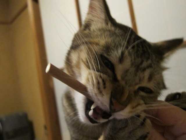 久しぶりに与えたまたたびの枝に興奮気味のniaすごい顔しているねごちそうさまでしたペロリンちょまたたびに執着していたのはほんの1分くらい興奮して豹変するのも早いが飽きるのも早いな