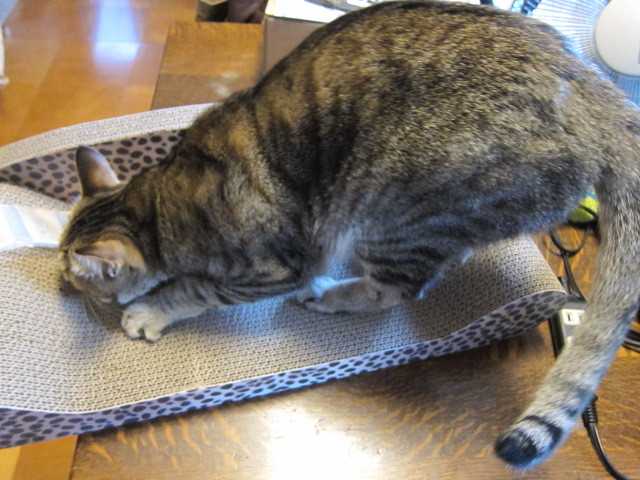 niaへのクリスマスプレゼントがようやく届いた私の注文も遅かったが発送も遅れたらしい袋開けたらすぐに爪とぎを始めるnia大きめサイズを買ってみたけれど気にいってくれたようでなによりまたたびが3袋もついていて少しふりかけてあげたら更に食いつくniania+またたび=狂暴化なのでほどほどに(笑)部屋の片隅に設置さあ思う存分といでくれたまえ