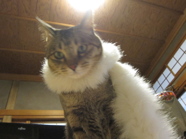 niaは気に入らない事をされるとフリーズする首にかけられた白いぽわぽわマフラーが気に入らないので固まったまま全然動きませんwww多分静かに怒っているんだと思ういや。呆れているのかもやれやれ人間ってつまらない事をしたがるにゃあとでも思っているに違いない今日はわりと暖かい日だったのでniaは久しぶりに窓辺で日光浴を楽しんでいました同じぽかぽかでもこたつより太陽のほうがいいね