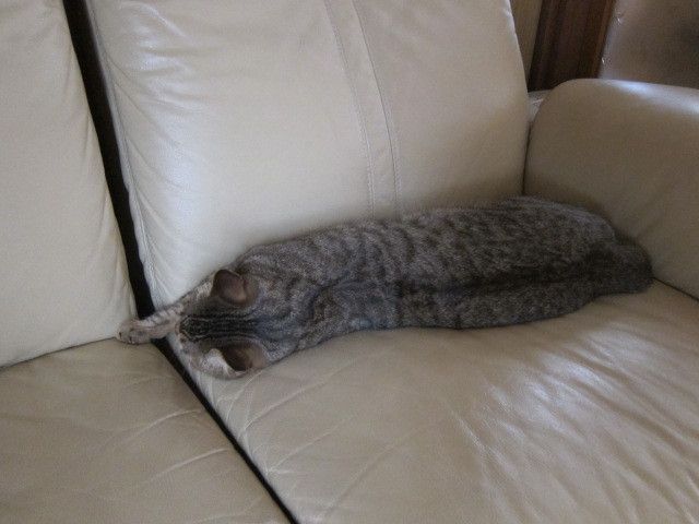 廊下のソファで寝ていた