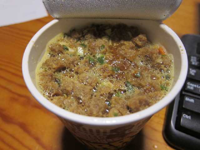 先月、夫が買ってきてくれたカップヌードル「謎肉まみれ」