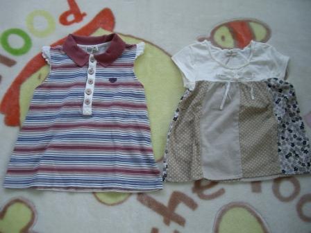 今日は暑さが幾分かマシだったので、娘ちゃんの大好きな自転車に乗せ出かけましたついつい・・・近所のBREEZE(F.O.kids martの実店舗)に行ってしまいました。(「行こう」と決めた時点で何か買うつもりだったのかもしれませんな)定番品を除く夏物が全部半額になってましたずっと気になってたコレも半額画像ではイマイチと思ってたんですが、コレ!実際に見るとか~なりカワイイんですよねぇまだセールになる前に店頭のマネキンに着せてあって「おぉっ!!コイツはこんなに可愛い服だったんだ!」と気付かされましたそれからずっとセールになるのを待ってました。ピンクの95が欲しかったけど残念ながら完売100が残っていたので試着してみました。やっぱり大きいなぁ~。横が少しプカプカ。後ろもかなり余ってるなぁ~。でもでも、着られないことはないぞ確実に来年もイケそうやん!しかも1,500円チョイだぞ!ってことで、案の定買ってしまいました。ダンナにはもちろん内緒ですご機嫌ナナメなのに無理矢理試着させられた娘ちゃん。再度着替えさせてくれるはずもなく、そのまま着て帰っちゃいました実際に着せてみるとさらに可愛いですねぇバックの白い部分はレースが2段になってるし、首元のレースもいい感じ。何より後ろ姿がすんごい可愛いんですよ~~!生地はさらっとした綿素材、ゆったりしたシルエットで涼しそう。1,500円で良いお買い物をさせていただきましたこれで、本当にこれで夏物は最後にしますっっっ!!!!!!・・・?
