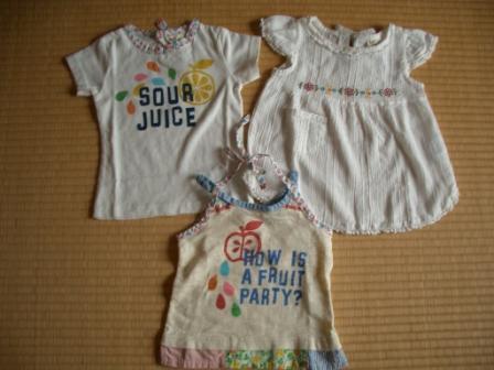 先ほど郵便屋さんが到着!楽天外で購入したキャリー福袋がやってきました。ダンナが午前のみの土曜出勤のためサクっとネタバレです。買ったのは『seraph+halftree』の95サイズです。セラフの白スモック 3,045円セラフのグリーンのタンク 1,995円(あれ?2,415円~3,045円じゃなかったっけ?)ハーフツリーのピンクT 2,415円交換希望です!!ハーフツリーのTシャツは同サイズで色違いで白を持っているので交換希望です!!交換してもいいよって方、おられましたらよろしくお願いします!セラフのグリーンタンクは好きなデザインなんですがポチャな娘が着られるか微妙です・・・。もし良いお話があるならばお願いしちゃうかも。。。もうダンナが帰ってくるかもしれないので、ひとまずこれにて失礼いたします!!