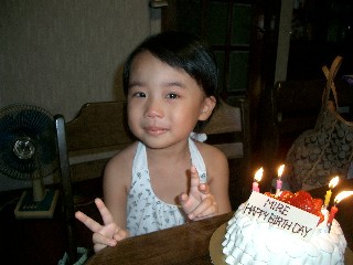 またまた久しぶりの日記です^^;日本に帰ってきてから1ヶ月。なぜか悪いこと続きのみれままです。これは8月末のできごと。最近はやっと涼しくなってきたものの、このとき福岡は35℃の猛暑続き。それと関係あるのか無いのか、私は突然の出血で急きょ点滴。さらに流産止めと止血剤の薬の服用を余儀なくされ、そのすぐ後にはミレが原因不明の40度の高熱+脱水症状で点滴。翌日も救急病院へ行き、血液検査、尿検査、そして再点滴。検査をしても原因は不明で、ただ血液中の細菌の数値が高いことから何らかの『細菌感染症』との診断。ついには入院にまで至ったのです。4歳を目前にして、初めての点滴と入院を強いられたミレ。今まで滅多に病気しないほど元気だっただけに、点滴を引き連れた姿はとっても痛ましく、私は何度も涙、涙でもそんなママとは反対に頑張ってくれたミレ。最初は点滴の針が刺さった自分の手を見るだけで怖がってたけど3日目にはすっかり慣れ、熱も下がり、ご飯を食べれるまでに回復。再血液検査の結果、入院5日目には退院となりました。一時は病院内でミレの誕生日を迎えることになるんじゃないかと心配しましたが、無事、8月27日にちゃんと4歳の誕生日を家で迎えることができました~韓国にいるアッパからは大好きなぬりえやアニメのDVDなどが届き、すっかり元気を取り戻したミレ。本当にヨカッタでもアッパと一緒じゃなくてごめんねぇ・・・来年は家族4人でお祝いしようね♪今回 ミレの入院を通して、健康であることの大切さをすごく痛感した私。ママは今年もミレが元気に誕生日を迎えられたことに、心からアリガトウですこれからもずーっと元気であることを祈って・・・