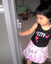 昨日の話です。ベランダで洗濯物を片付けていたら、みりみりちゃんが急に泣き出しましたどうやら自分も外に出ようとして窓に指を挟んだようです^^;「いたーい、いたーい」って泣いてたのだけど、ママが「いたいのいたいの飛んでけ~」ってやったら不思議そうな顔をして「どこいったの?あっち?」なんてゆってすぐ泣き止みました。ここまではよくある話ですしばらくすると、今度は独り言をブツブツ・・・よ~く聞いてみると「ダメよ!もうしたらだめっ!」「もう~怒ってるんだからね」ってゆってます。よく見ると窓の桟(さん)に向かって怒ってます、しかもママがいつも言ってる口調で(^^ゞ 私ってそんなに怒ってるかな~ってちょっと反省しました最近気に入らないとすぐに怒ったり、泣いたり、モノを投げたりします。今はそうゆう時期なんだけど、、、なんとかならないものかな~(>_