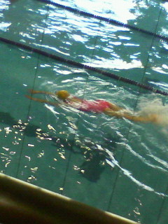 ほんの数メートルだし、ゴーグルしてるし、膝は曲がってまっすぐは行かないけど、でもとりあえず泳げるようになった気分