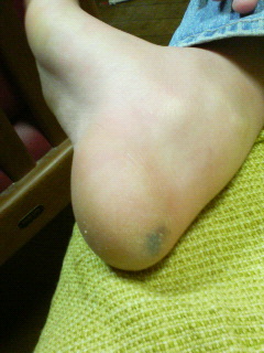 足のかかとのところが黒くなってる。少し前に気がついたけど、マジックでも付けて、取れないんだと思ってた。でもでも、中のほう・・・そういえば、こっちの足が時々痛いと言ってた。急に気になりだした。病院に行ってみよう。皮膚科?整形?