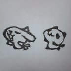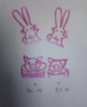 *……………………………………………………………………………………*なぜか、動物を彫りたくなる私消しゴムスタンプデビューは、娘のみかんと合作でデビュー♪今回は、3歳のぶどう(男の子)と合作~~♪小さい子豚の絵を、絵本から拾い出し、写しました。同じものをうつしているのに、それぞれ違う味がでてるでしょ~♪娘いわく・・・ぶどうの豚の方がなんか、かわいぃ~~!と・・・ぶどうを誉めまくったら、また書くぅ~~!!と意欲満々でした~♪*……………………………………………………………………………………*Template-すず♪♪