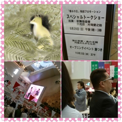 ごんきつねでおなじみの黒井健さんの絵本原画の世界展へいってきました。~物語との出会い~ということで、いろんな作家さんたちとの出会いをテーマに、数々の原画を楽しませていただきました。そして同じフロアで、まさかの愛之助様のトークショーに出くわしました。さっそく愛之助ブログにアップされています♪香りのトークステージでしたが、半沢のお話も少々。金融庁の~というせりふを何度も言い直しされてたのを堺さんが聞いていたらしくだんだん、ドラえもんの「タケコプタ~」みたいな言い回しに聞こえたよ~っと大笑いしていたとか。香水をにおった感想を黒崎風にといわれると「いいわね~~~~!!」といってくれたり、無茶ふりにも笑顔で答えてくださるラブりん♪今日は、東京中央銀行の中にいます!!って後で、堺さんに電話しときます♪ともいってらっしゃいました。半沢が走った歩道橋も、見ると走りたくなりますね~っと笑いを誘ったり、楽しいトークは30分間あっという間でした。香りのお話ですが・・・香りのソムリエがいらっしゃるらしく贈る方の年齢とか好みとかで、その方に合う匂いを提案していただけたりするそうです♪情熱大陸のカメラがついていて、密着されていました。そんな中も、客席からのお手フリには笑顔で手を振りカえし、サービス満点のラブりんでした♪本日は、おしゃれイズムに出演♪10月からの松竹座での歌舞伎のお稽古が今夜よりはじまっているようで、何かと多忙ならぶりんですが、お体に気をつけて、これからもがんばって欲しいと心より応援しております♪今日もありがとう。