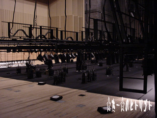 ども、☆たー☆ですおばんですさて、今日は11時に出勤しました。何だか身体が不調でございます。。。今日のお仕事は幼稚園の生活発表会です。出勤してスグに軽く仕込みにゴーサスは地明かりを4列とドロップ当てで終り。早いものです(笑)フロアは看板当てのみだしね。パッチして姫に前明かりシュートしてもらってランチタイム。13時より本当の仕込み開始です。搬入口を開けると幼稚園の先生が津波のようにどぉあぁ~~C= C= C= C= \( ;・_・)/ 色々と手作りのセットや楽器を搬入してくる。。。☆たー☆「すいませ~ん、最初に看板を吊りたいので看板持ってきて下さ~い」先生A「はーい」先生B「あれ?」バスの先生「あれ?これで搬入終りだよ」先生C「いやぁ~~~~~~~」←叫び声忘れました。ええ、看板をね。。。。そうですよ、メインタイトルですよ。。。園長「戻れば間に合う。戻れ~~~」その間、持込みのドロップを吊り込みして平台を組む。何だかんだしてるうちに時間はどんどん無くなり。。。客入れ開始。ザワザワ。。。ザワザワ。。。ええ~~~入ったねぇ。。。昨日の日記にキャパ1300だけどそんなに入るの?みたいな事書いたのですが。。。これ本番の10分くらい前の写真なんだけど。。。最終的に2階席も埋まってたからなぁ1000近く入ったかもね・・・((・_・ ;)The 親バカ大会でございます。おっと、看板も無事に到着されてドン中で仕込んでシュート。無事に開演でございます。お遊戯に合奏にオペレッタ。いやぁ、かわいいね~こういう時だけ子供が欲しくなっちゃうね~ん~子供には縁が無い☆たー☆でございます・・・ブンブン(>_< )三( >__< )三( >_
