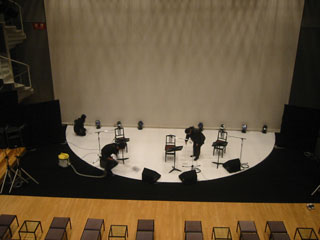 帰ってきました。-----キリトリ-----キリトリ-----キリトリ-----今日も長いよ(笑)ども、☆たー☆ですおばんですさて、今日は昨日からの続きでライブの本番日でした。とりあえずで仕込み上がってるからチェックからスタートプリセットフェーダーでチェックんで、記憶のチェックをしたら照明はとりあえず終了。制作チームが客席を作り始めます。その間に音響も簡単なチェックをして中のチューニング表のチューニングは昨日のうちに終わらせてたみたい。俺たち舞台スタッフは舞台の掃除に入る訳ねパンチなのでバキュームとコロコロ使って丁寧に掃除をします。これねぇ...常日頃から学生に教えるというか言うんですけどねミュージシャンや役者を舞台に上げる時に掃除しないスタッフはおかしいと。基本的に大道具さんや演出部のお仕事なんですけど、セクション関係なしに整理整頓は基本中の基本だし、作り手側としては何より演者には気持ち良く演じてもらいたい訳でしょ俺が新人の時に叩き込まれたお仕事の1つですよ。ままま、自分の部屋は.....ねぇ....(≧∇≦)ぶぁっはっはっ!!そしてVTRチェックです。昨日の夜に届いた今日のメニュー(笑)資料で来てるDVDの内容と同じっぽい...時間はたっぷりあるからチェックをしつつチョット見てみようなりました。で、DVDを流しながら俺は卓に上がり何となく明りを出して、修正して、作って、メニューに書込んでいきました。後はRHでチェックします。時間に余裕があるってのはステキな事です☆んでま、昼飯食ってから再びホールへ客席も出来上がってさやる事やっちまったから少しだけマッタリ(笑)スケジュール通り出演者が楽屋入りしてさっそく舞台チェックをしてもらいました。立ち位置は俺が決めた位置で難なく落ち着き(嬉)簡単な打合せをしてからサウンドチェック→RHに突入です。今回は2部構成1部がリーディングを中心として歌もあるステージ2部は歌を中心としたステージ1部のRHからスタートです。(」゜ロ゜)」(」゜ロ゜)」(」゜ロ゜)」オオオオォォォォォーDVDと中身がほぼ一緒だ(笑)あ、この話知ってる(爆)(。_。)(゚-゚)(。_。)(゚-゚)ウンウンこんな明りかなぁ?じゃぁ、次の明りに繋げるには...作るか(笑)てな感じで90分近くさらに2部のRHをしたの。時計を見たらさ...(」゜ロ゜)」(」゜ロ゜)」(」゜ロ゜)」オオオオォォォォォー16:55...客入れ5分前じゃん...いやいやいやいやいやいやいやいやいやいや.....直しが出来ない...けど、やらなくちゃ本番出来ないからダッシュでしなくちゃ状態に(笑)照明はスグに直し終わったし、舞台も簡単に掃除して打合せして終り問題は音響。RH終了時にマイクの追加を頼まれちゃって...慌てましたけどねまぁ、予定開場時刻から10分押しで何とか客入れ出来ました。いやいや、今回もいい感じでお客さんが入ってきます。まま、キャパ自体は大した事ないの言っても100チョイだからでもまぁ、ファンからしてみればプレミアなライブですよ何より客席と舞台が近いのなんの(笑)多分一番前なら本人の息づかいまでわかるだろうなぁってくらい近い本番開始5分前いい感じでケムリも溜まり客席も埋まりました。10分押しで本番スタート最初は映像映像終りでブルー明りで本人登場1部に入ります。リーディングと歌の構成で行ないます。まるっとRHでやったからシーン番号も割振ってるのである程度安心です。いやぁ...SS効いてるねぇ(笑)1部は60分?70分近くあったかな?ま、1ドリンクのライブですからね酒を飲む時間が必要な訳です(笑)20分の休憩でやんす2部は通常のライブって感じでした。ただ、殆どRHをやってないのでどんな感じの曲がくるのかわかりません...昨日の日記に書いた通り、本番は『In/Out』なので出音一発勝負な明りになるのは否めませんまま、無難っちゃー無難な明りを用意したけどねぇ1曲だけ...それはないなぁってのを出しちゃいましたよ(T_T) ウルウルでもま、慌てず1コーラス終りでス~~~っとフェードチェンジ☆アンコールまで盛り上がり無事に本番終了。で、最後はお約束ですが怒濤のバラシです。(≧∇≦)ぶぁっはっはっ!!フロアをバラして、サスをバラして、機材整理して、機材を戻して...真冬なのに滝汗でしたよ。何だかんだで23:00になっちゃいました。┐('~`;)┌ モウツカレマシタ・・まま、こういう疲れは全然アリなんですけどね♪さて、明日はミュージカルのお仕事です。とはいえ、劇団○季みたいな感じではないみたい...だってねぇ...メモが残ってたの『明日、9:00に照明8名で伺います。』え?は、は、8人ですか?サス3本で地明りしか無いんですけど?まままま、頑張って来ます。では、また明日☆