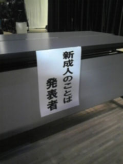 ども、☆たー☆ですおばんですさて、今日はいよいよ成人式の本番日朝一で電源関係を立ち上げて調光卓のチェックからスタートっす。プリセット1つ1つ見てチェック完了。サブに記憶した明りもチェック本番前、最後の打合せをして後は始まるのを待つだけです。中略(笑)そんな訳で本番開始(爆)まずは映像からスタート...中身は杜の都でやってる各市町村のふるさとCMの上映2005年から2009年までの5本の上映...1本30秒だから...3分で終了。んで、地元の吹奏楽団の演奏ちなみにこの吹奏楽団は毎年全国大会へ出てる中々強いバンドそんで、式典式典の時間は50分...まぁ、短いと言えば短い荒れる成人式が話題となってるけど、ここ数年うちは大人しいものですよ。確かに私語が多くて若干ざわつくけどね、ままま、まだまだ捨てたものじゃないですよ。それにしても流行なのか...盛り盛りの女の子がやたら多かったな(笑)アゲ嬢ってやつか...(≧∇≦)ぶぁっはっはっ!!後ろから見るとみ~~んな同じ(≧∇≦)ぶぁっはっはっ!!式典が終わってから今度は写真撮影卒業した中学校区毎に撮影していくんだけど...ここで素朴な疑問最近引っ越してきた子はどうなんだべ...って(笑)まままま、実は俺もそうだったんだよね高校1年の時に引っ越しをしたからさ、行くべき成人式の会場は全く知らない人ばかりそれはちょっと...どうなの?って事で中学までいた地元の成人式に出たんだもんやっぱり、今でもそうだよねぇ(。_。)(゚-゚)(。_。)(゚-゚)ウンウンと、勝手に思うのでした。(≧∇≦)ぶぁっはっはっ!!無事に本番は終り、そのままバラシをしてたけど14:00頃に一旦中断して昼飯その後ゆっくりバラシをしてましたよ。バラシ終わってから俺は来週のライブで使う色を作ってました。仕込み図を見ながら用意していくんだけど...ハッと気が付いたの仕込み図にはパーライトのVNがあるのねVNは後から買った機材でコネクターはT型メインホールのコンセントはALL 30Cなのだから変換コード[30C→T型]はたくさん作ってあるのところが、2,3階のホールのコンセントはALL 20Cうぁ....変換コードがない(」゜ロ゜)」(」゜ロ゜)」(」゜ロ゜)」オオオオォォォォォーそうだった....だから今まで使いたくてもVNは使わなかったんだ...(≧∇≦)ぶぁっはっはっ!!でま、既存のケーブルを上手く使い、極力手間を省く様にYouとダッシュでケーブルを10本作りましたよ。ものは20C→30Cの変換逆変換みたいなものだね...これで30C→T型を使う事が出来るわけわかります?コンセントが20Cそこに20C-30Cの変換をさすそして30C-T型をさすとライトに繋がるってわけね面倒だけど、これが一番仕込み早いのこうして今日のお仕事は終わりました。仕事が終わってから由美ちゃん(実姉)の家へ母上の事でまたまた会議じゃないけど話をしにね。そんで、泊まってきました。明日はシフト上オヤスミですが仕事が溜まりに溜まってるのでドコかでお仕事します。ほら、俺って働き者だから...(≧∇≦)ぶぁっはっはっ!!頑張って来ます。では、また明日☆
